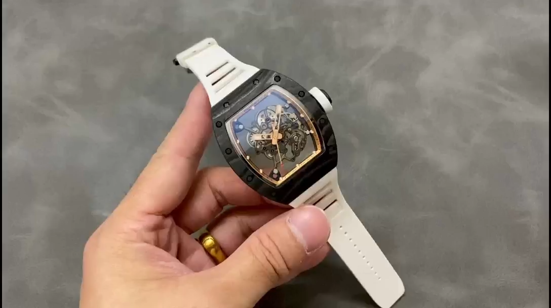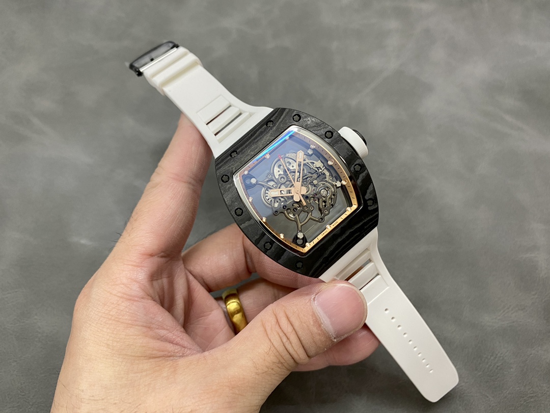 Richard Miller RM 055 RMUL2 NTPT Carbon Fiber White Rubber Strap