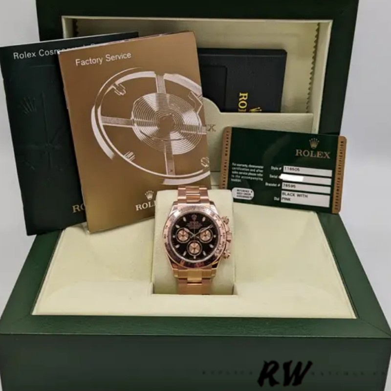 Rolex Daytona m116505 Everose Gold Black Dial 40MM Mens Replica Watch